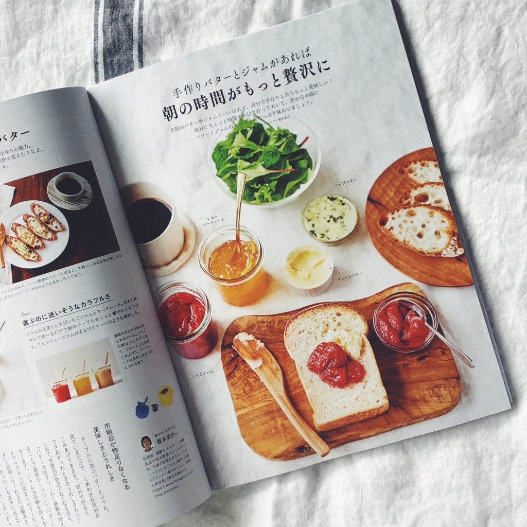 【リンネル掲載】手作りジャム、バターのレシピ 投稿日 2020/09/22 更新日 2024/11/29 著者 futarigohan カテゴリー 季節の手仕事・自家製調味料 タグ 料理研究家 レシピ動画 リンネル 季節の手仕事 手作りジャム youtube 料理動画 ふたりごはん 榎本美沙の季節料理 料理家 発酵レシピ 発酵 手作りバター 朝ごはん 発酵料理家 榎本美沙 シェア ツイート LINE 印刷する リンネル特別編集のムック本、 「しあわせな朝ごはん」掲載いただいています! パンのおともにおすすめな、 手作りバターやジャムなどたくさんご紹介しました。 バターはオリーブバターやハーブバター、フルーツバターなどアレンジも。 ジャムはいちごジャム、レモンママレード、ミルクティージャムのレシピをご紹介しています。 おすすめの市販のパンのお供や甘酒、ヨーグルトなどなど、 合わせてご紹介しています! お休みの日の朝ごはんの参考によろしければ! ***最後までお読みいただきありがとうございます。「ふたりごはん」は、料理家 榎本美沙による 発酵食品や季節料理のレシピ紹介サイトです。「ごはんを一緒に作ることで、より豊かな暮らしに繋がりますように。」そんな想いから、このサイトを作りました。 よろしければ応援していただけますととても嬉しいです。榎本美沙 タグ 料理研究家 レシピ動画 リンネル 季節の手仕事 手作りジャム youtube 料理動画 ふたりごはん 榎本美沙の季節料理 料理家 発酵レシピ 発酵 手作りバター 朝ごはん 発酵料理家 榎本美沙 シェア ツイート LINE 料理研究家 レシピ動画 リンネル 季節の手仕事 手作りジャム youtube 料理動画 ふたりごはん 榎本美沙の季節料理 料理家 発酵レシピ 発酵 手作りバター 朝ごはん 発酵料理家 榎本美沙
