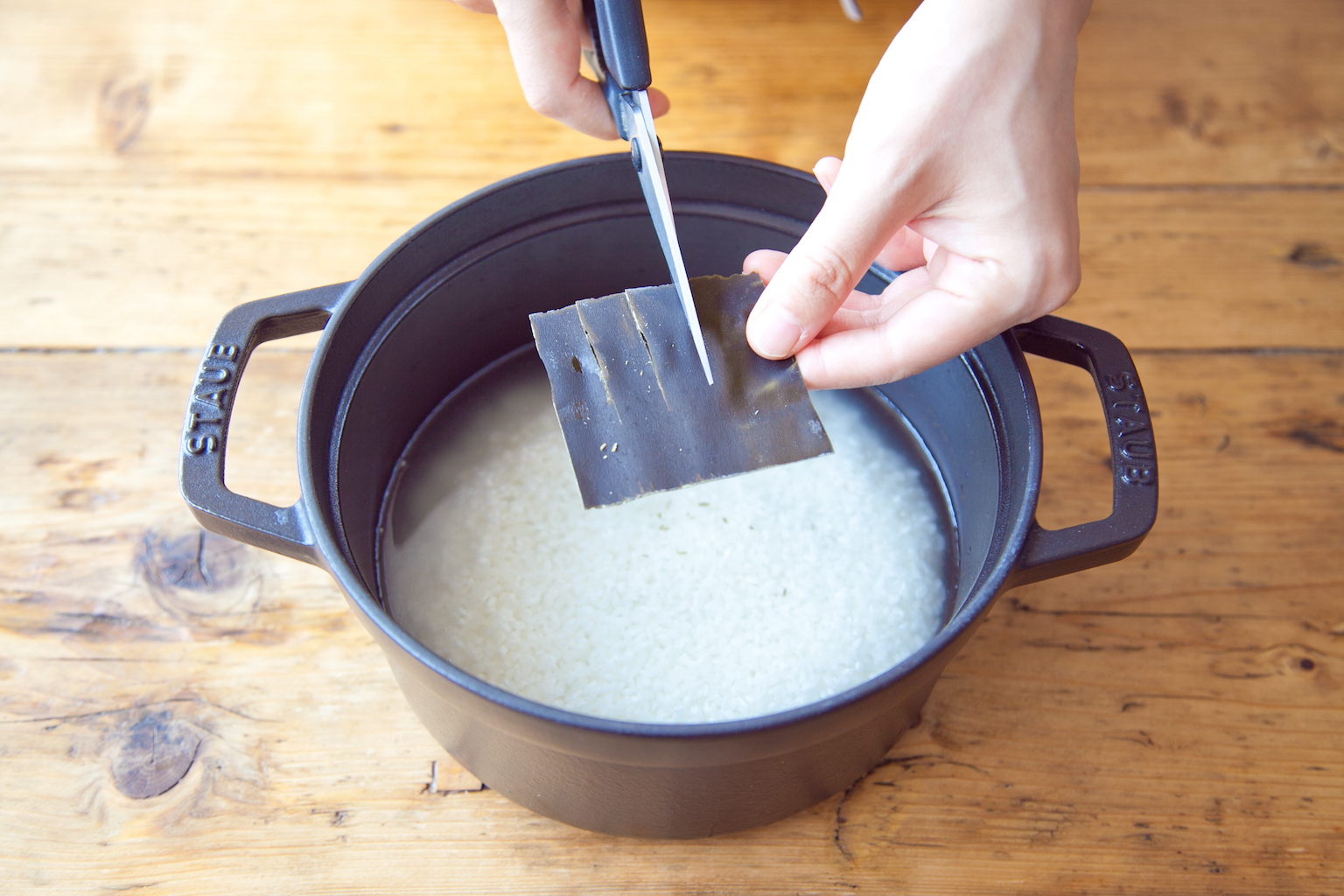 昆布にキッチンばさみで切り込みを入れて上にのせ、30 分おく。