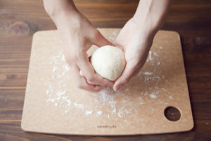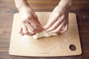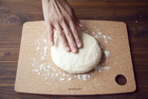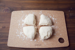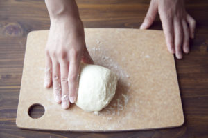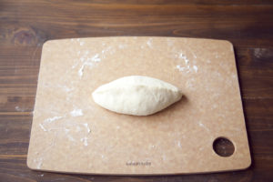 打ち粉(強力粉/分量外)をした台の上に出し、軽く叩いてガスをぬく。