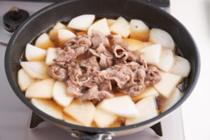 ●フライパンで手軽に煮込む、大根と牛肉の煮物