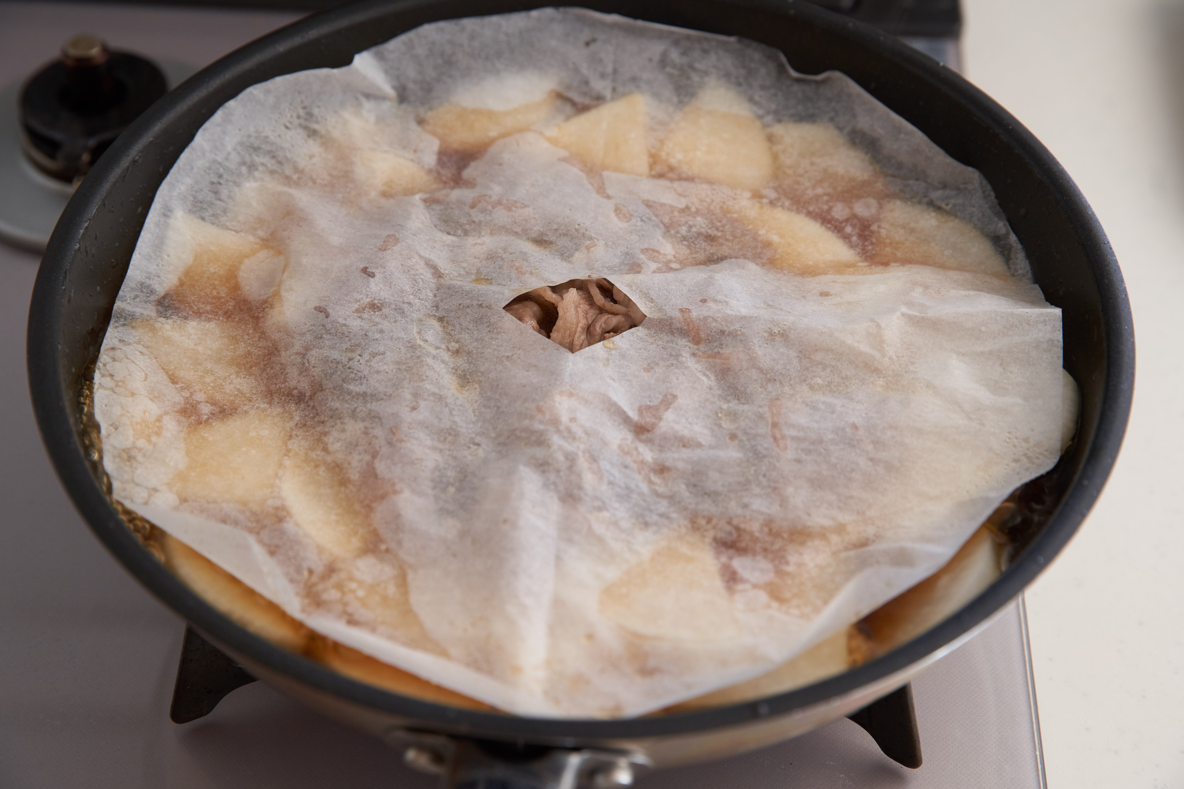 ・落し蓋はクッキングシートを切ったものを使用しています。
