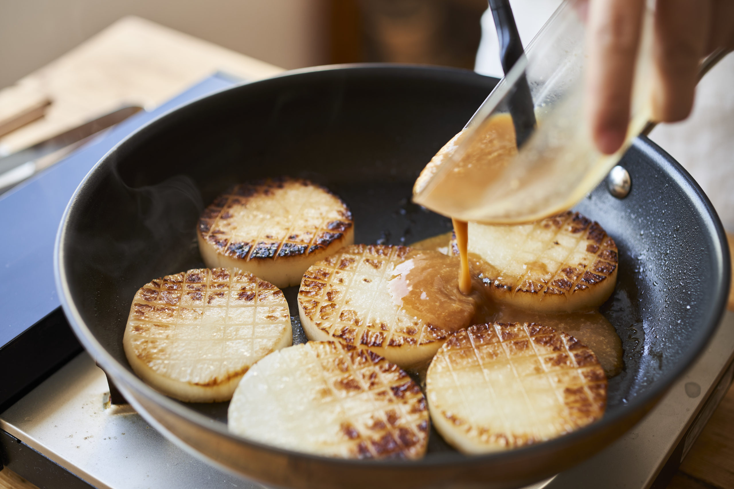 香ばしく焼いた大根と甘辛いみそだれが相性抜群!