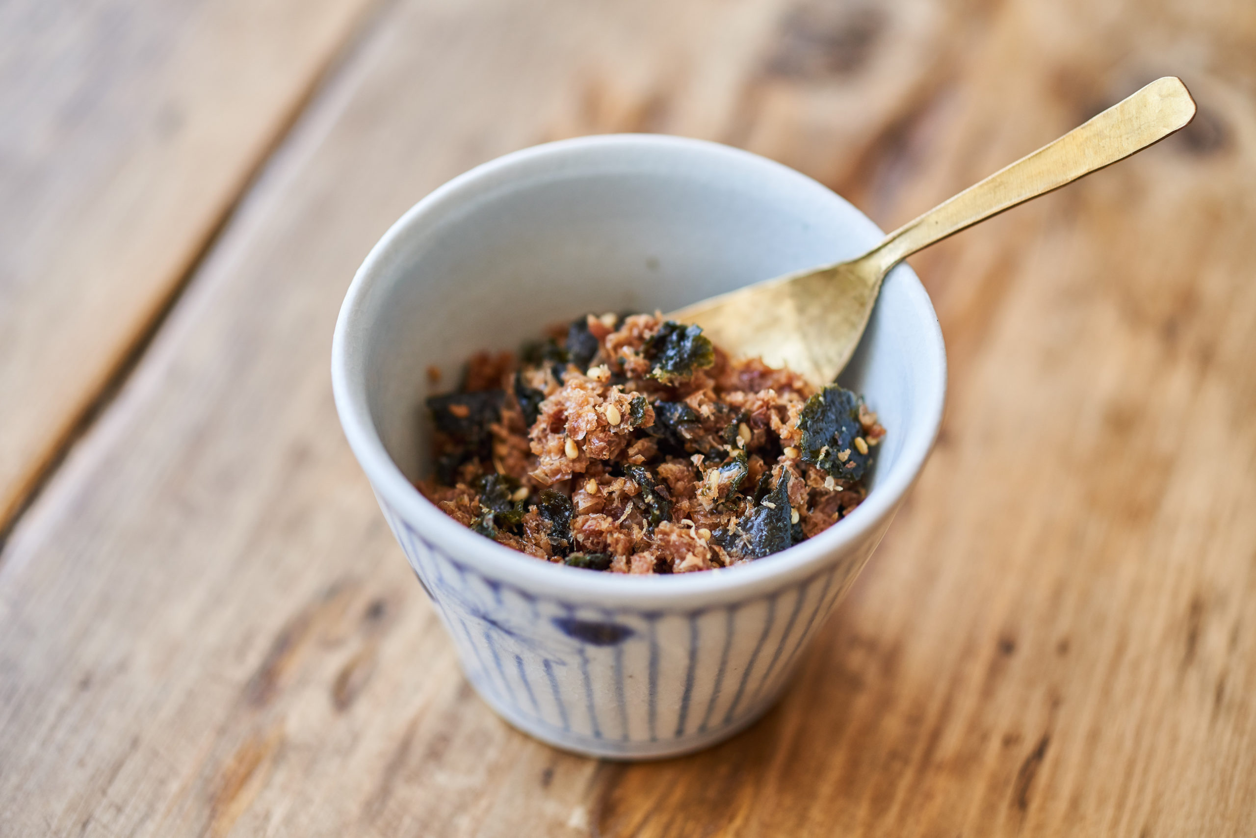 だしを作った時のだしがら活用、ふりかけの作り方です。