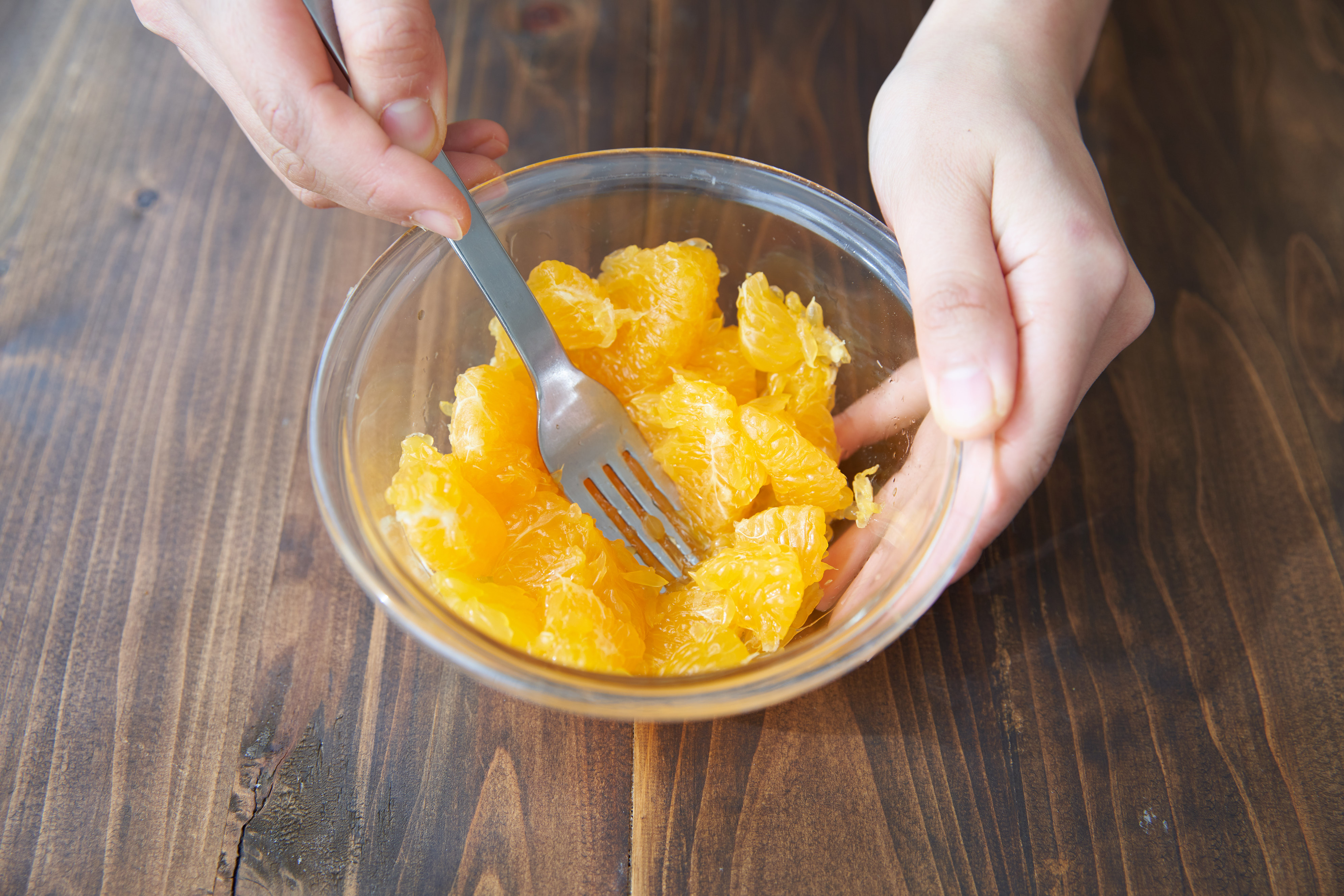 デコポンは皮、薄皮をむいてフォークで軽く潰す。〈デコポンソース〉の甘酒を混ぜ、2にかける。