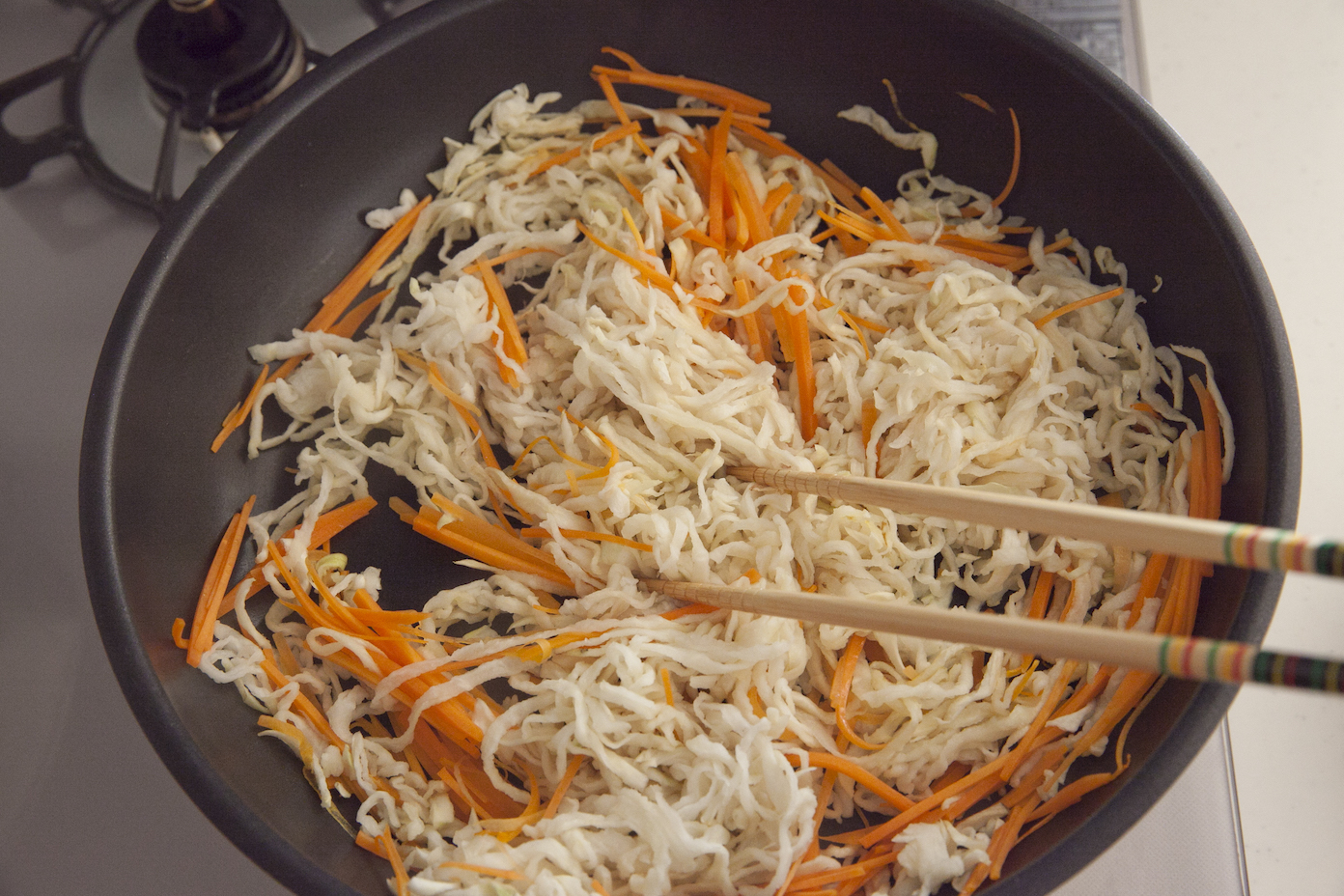 にんじんは千切りにする。