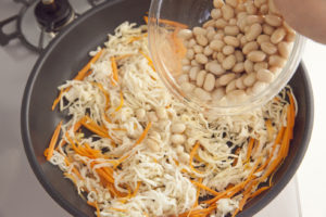 油が全体回ったら大豆を加える。