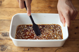 (A)しょうゆ、みりん(煮切ったもの) 各大さじ2