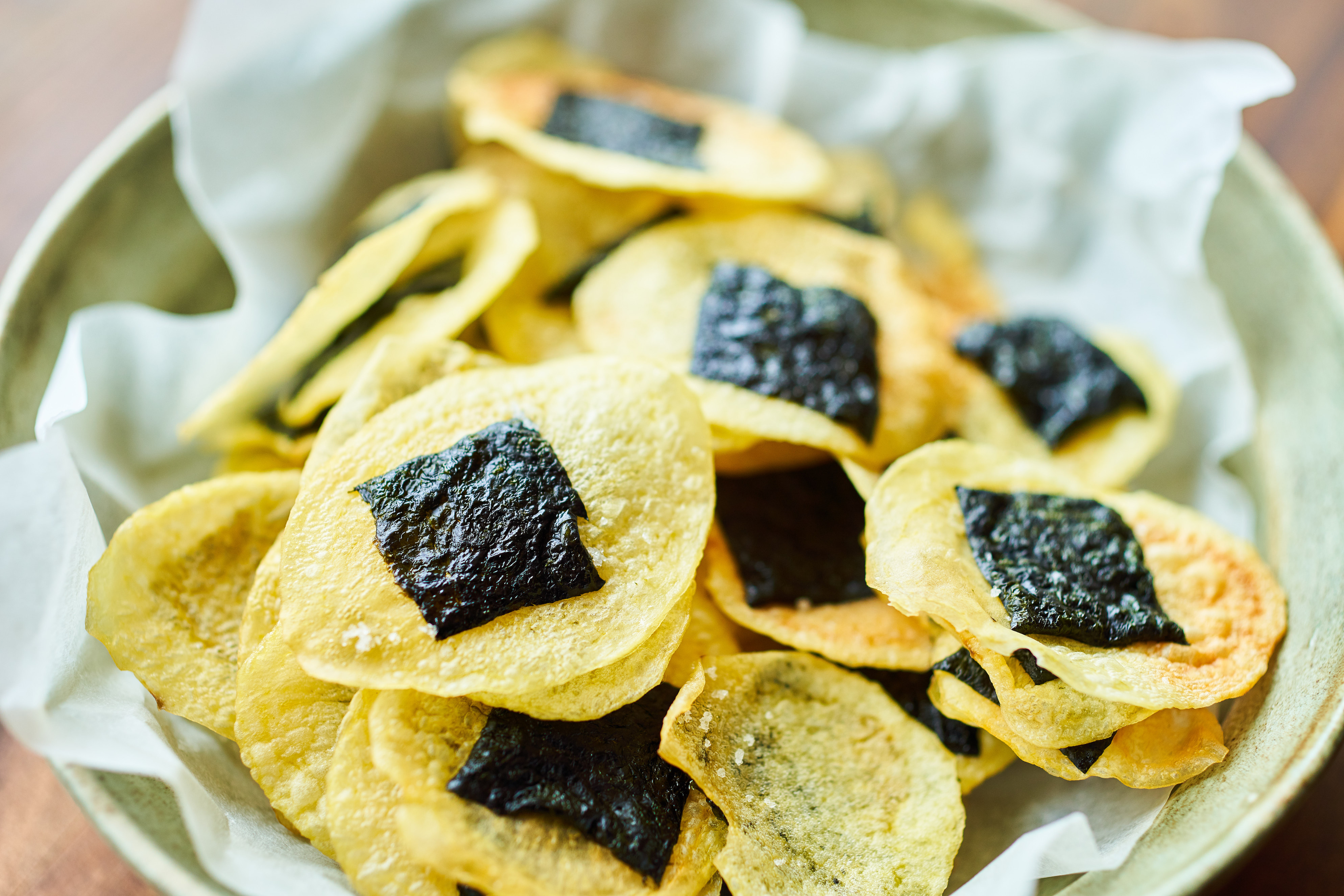 レンジでできる、自家製ポテトチップス(海苔しょうゆ味)