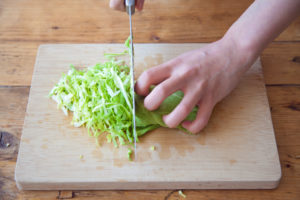 キャベツは千切りにしてジッパー付き保存袋に入れる。