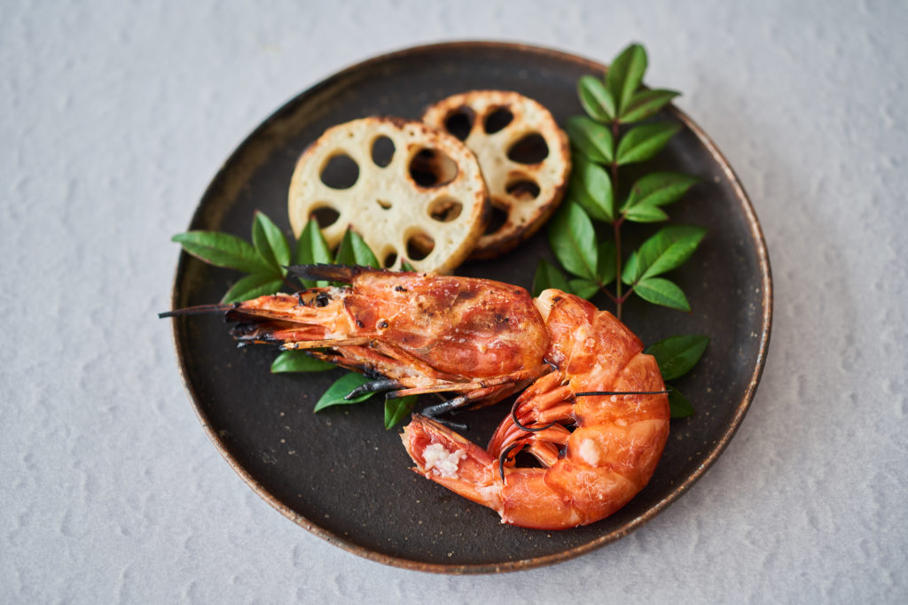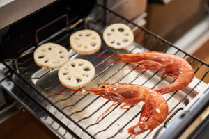 5分経ったら海老を取り出し、さらに2〜3分加熱し、れんこんを取り出す。