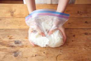1の袋に粗塩を加えて全体になじむようによく揉み込む。