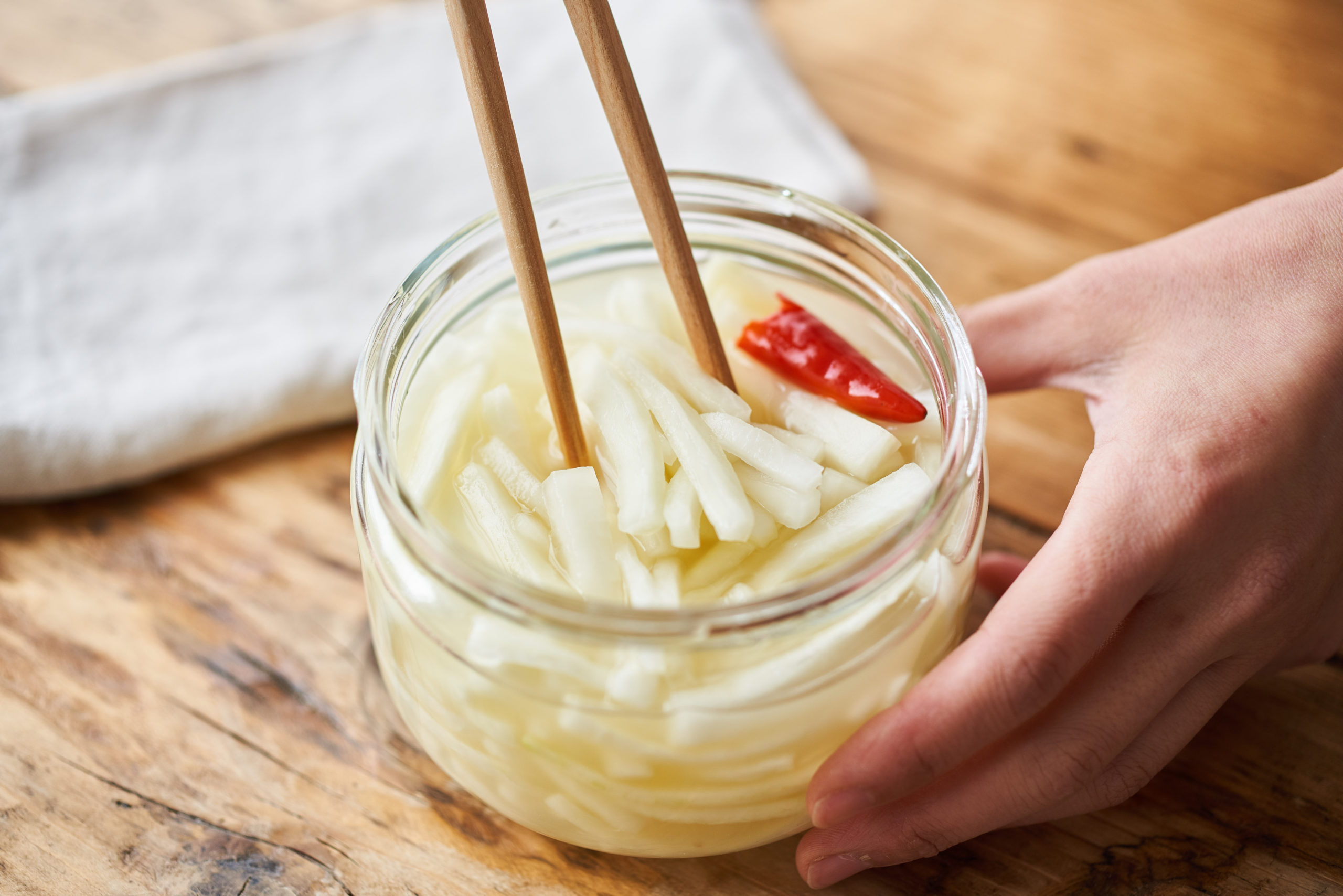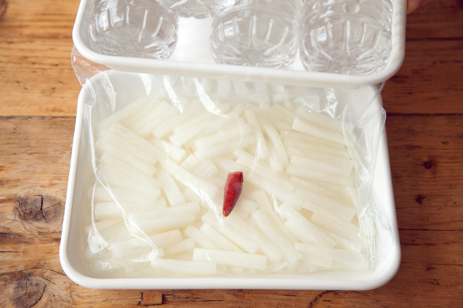 大根、塩、赤唐辛子だけでつくれる「発酵大根」の作り方です。