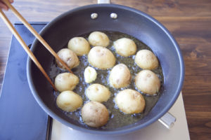 全体に焼き目がつくように揚げ焼きにする。