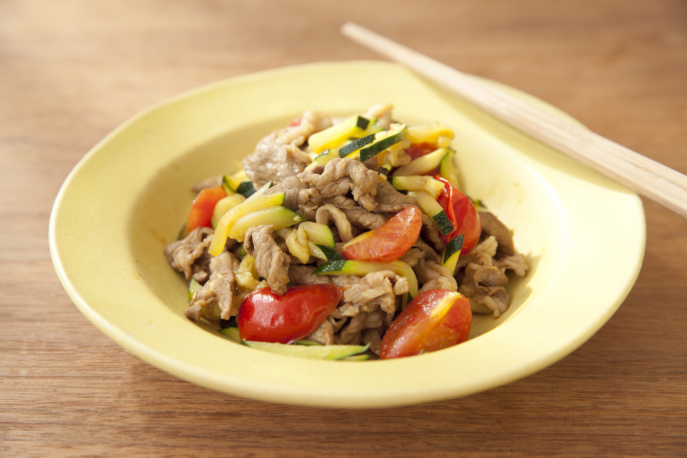ラム肉でヘルシー!夏野菜をたっぷり食べられる炒め物です。