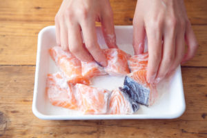 サーモンは4等分に切り、塩こしょう(各少々/分量外)をふり、