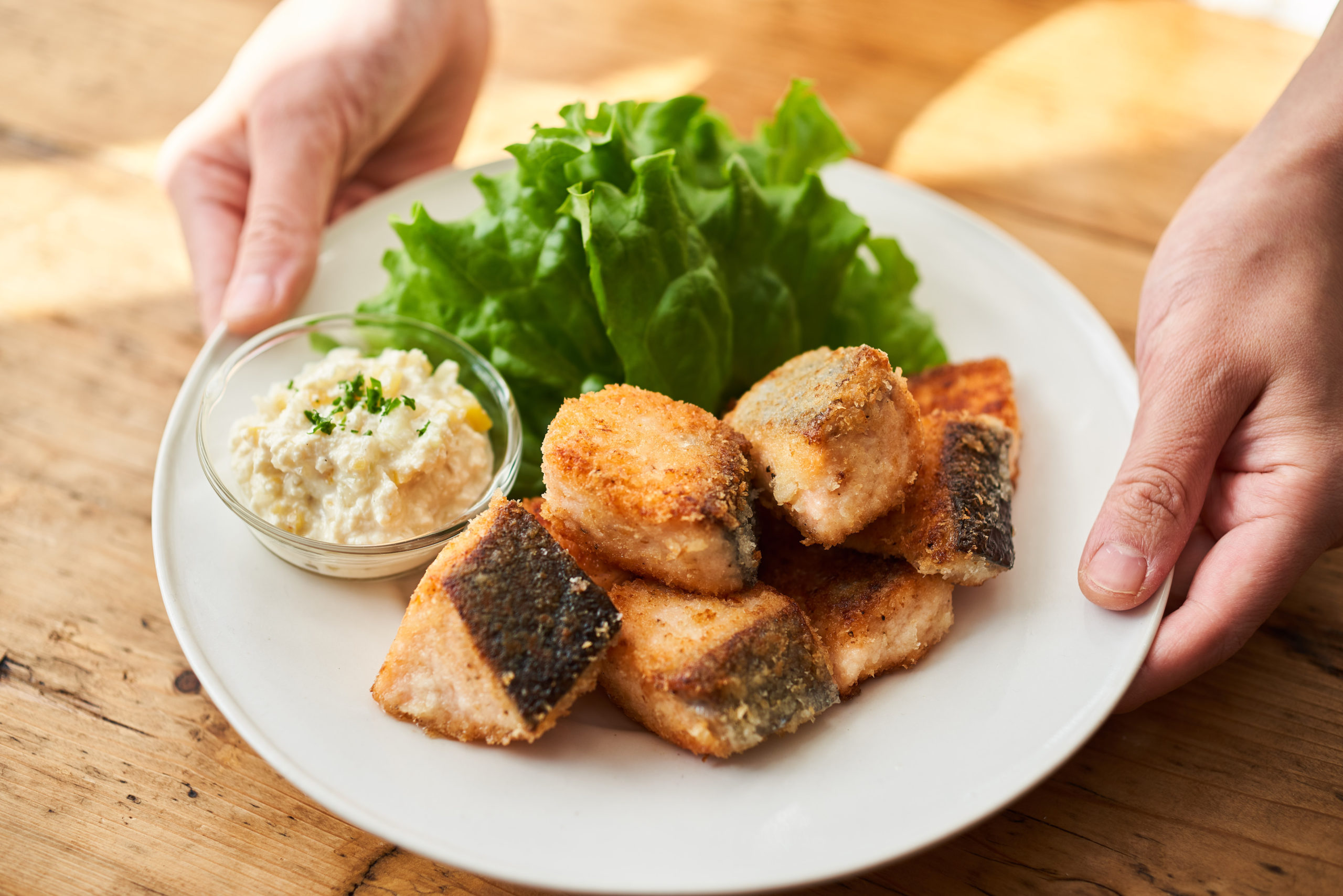 ●揚げない!サーモンのフライ お豆腐タルタルソース