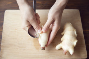 新生姜はスプーンで汚れている部分をこそげ、