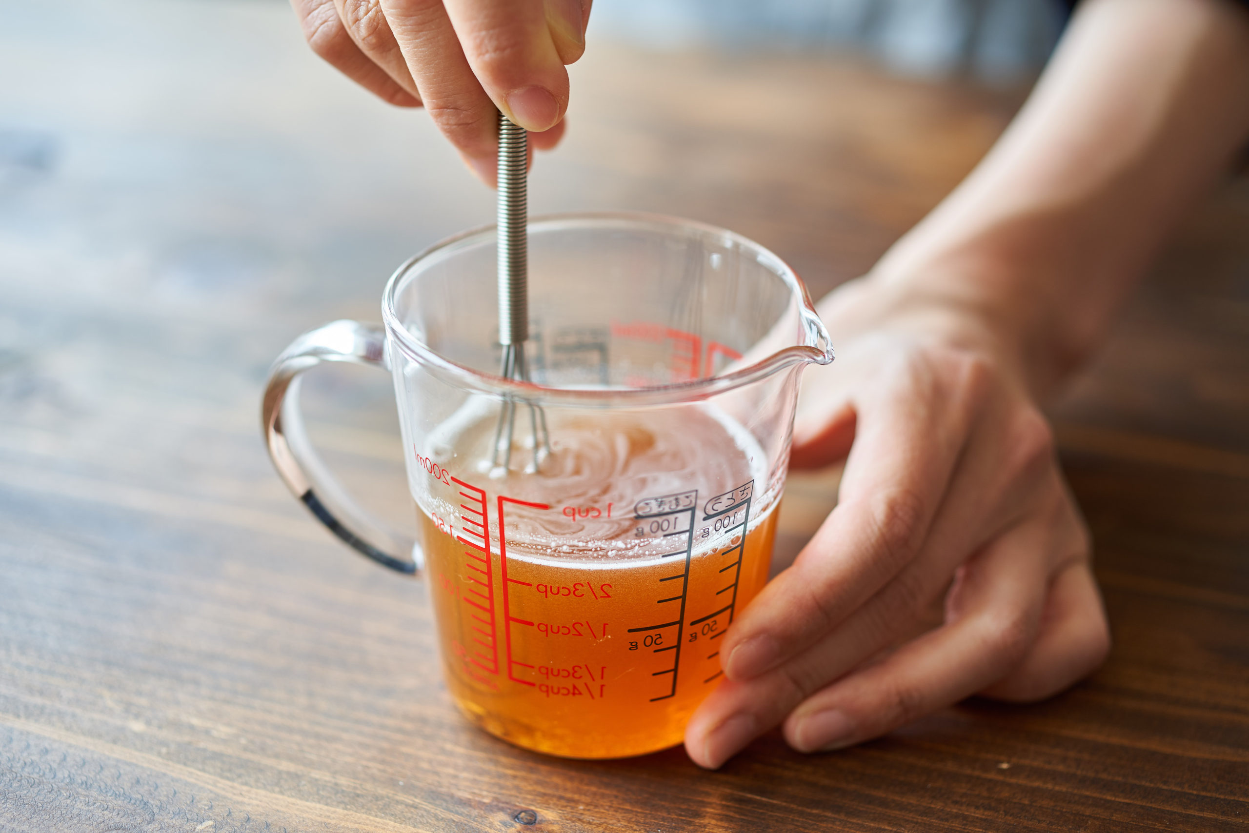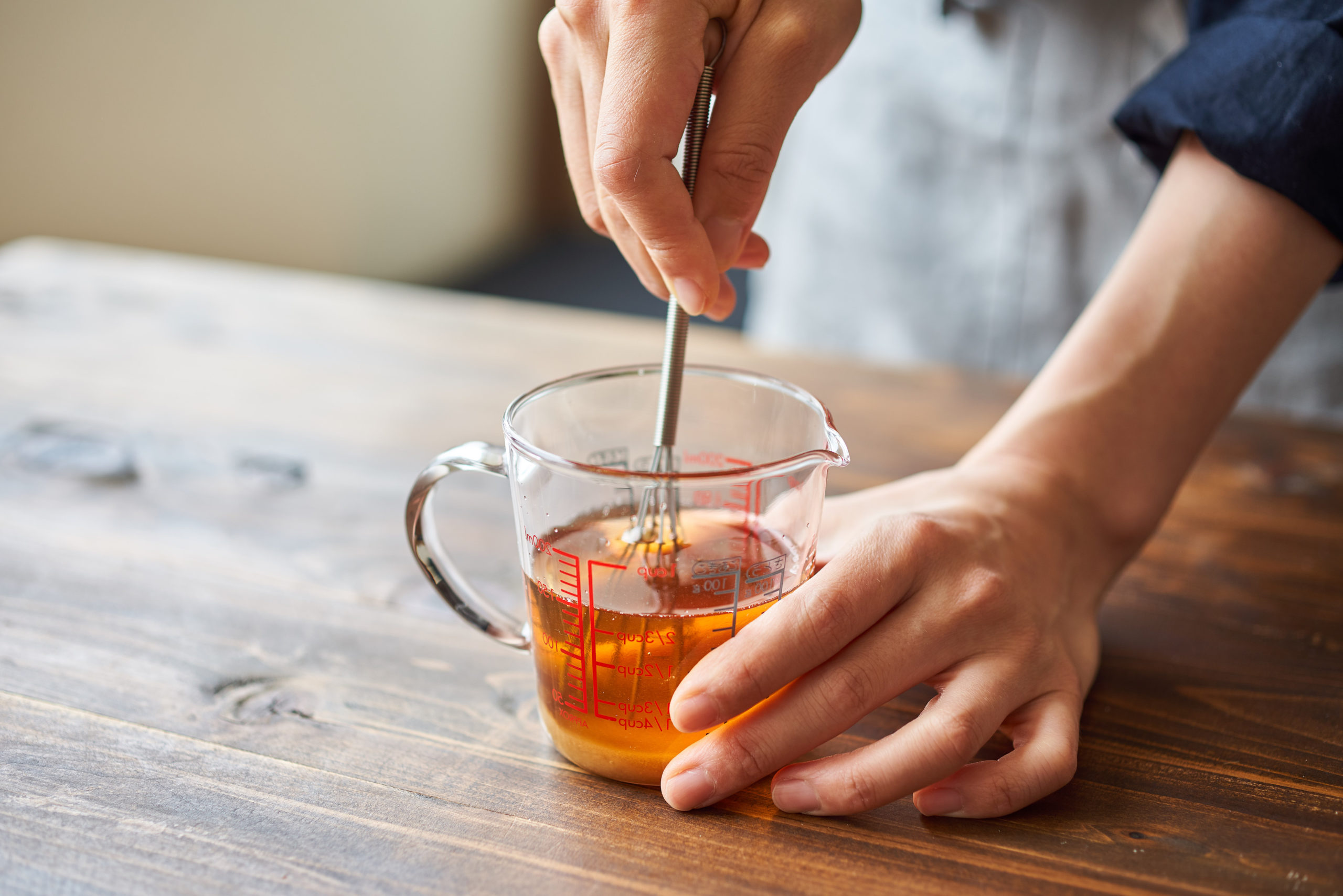 計量カップに、〈計量カップ甘酢〉の材料を上から順に入れてよく混ぜる。