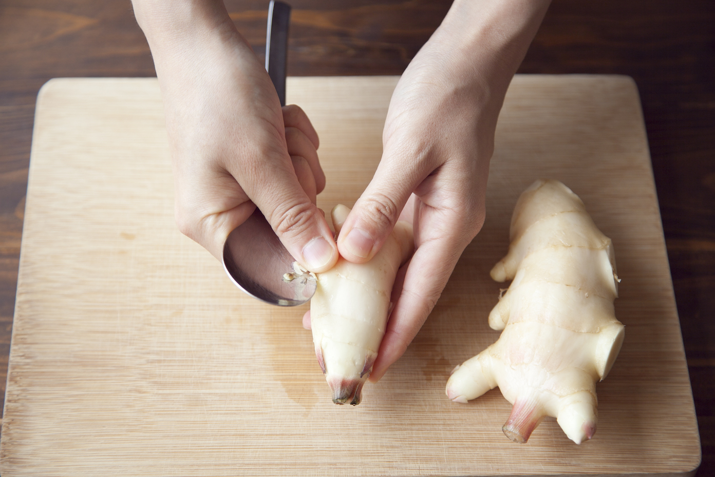 新生姜はスプーンで汚れている部分をこそげ、