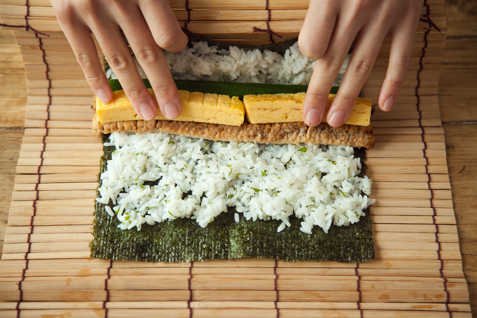 韓国風の太巻き「キンパ」を蒲焼きを使って手軽に作ります。
