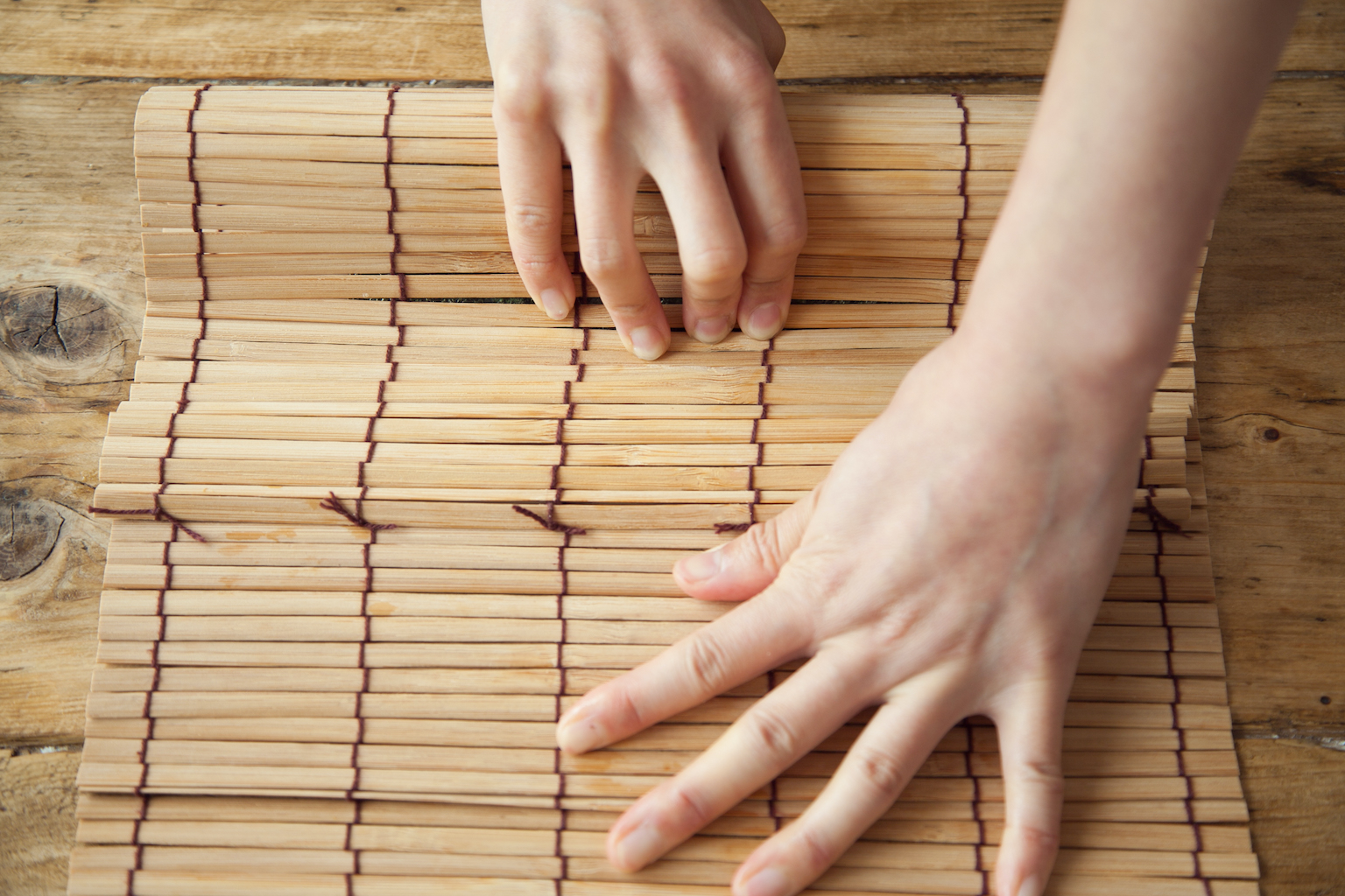 ごはんの端と端を合わせるように巻きすでしっかりと巻く。
