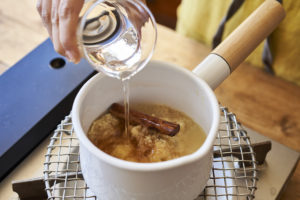 シナモンスティックを取り除き、レモン果汁を加え混ぜ、火を止める。