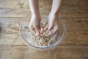 生地を作ったら、なるべく手早く作業をするとよいです。