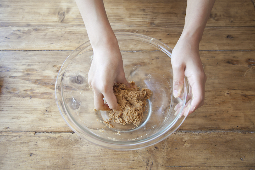 しょうがを汁ごと、水小さじ1〜を加え混ぜ、ひとまとまりにする。