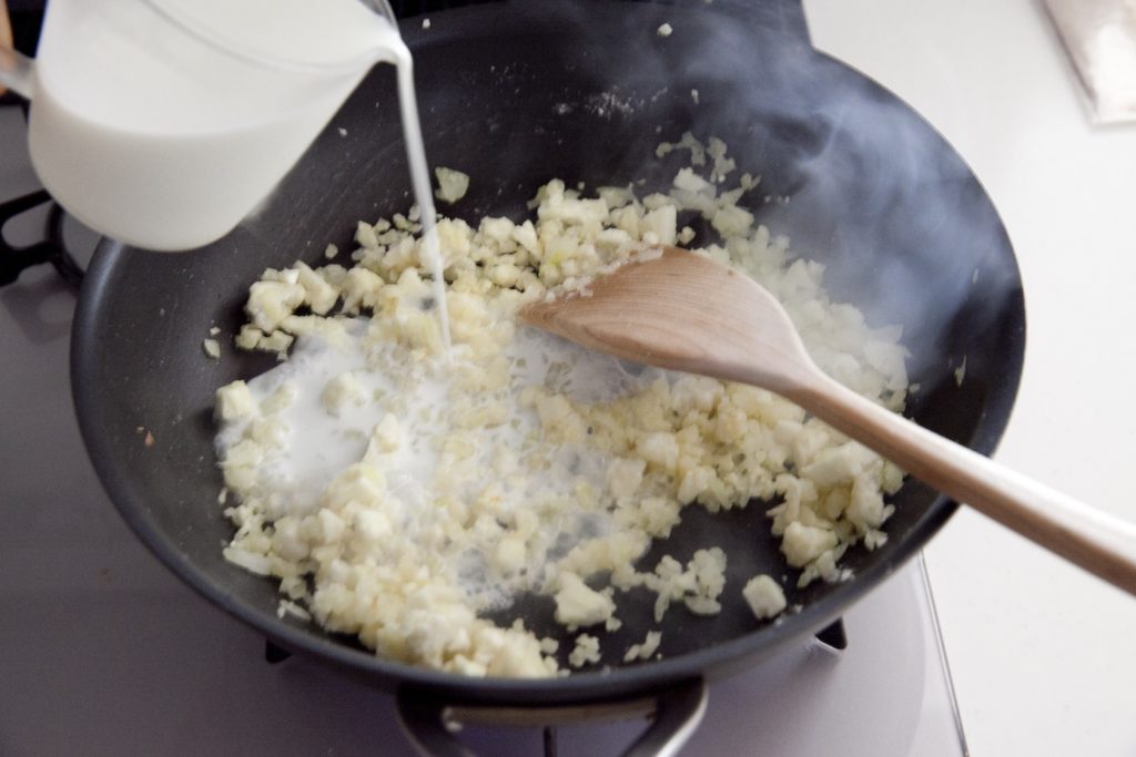 しんなりしたらカリフラワーを加え1分程度炒める。