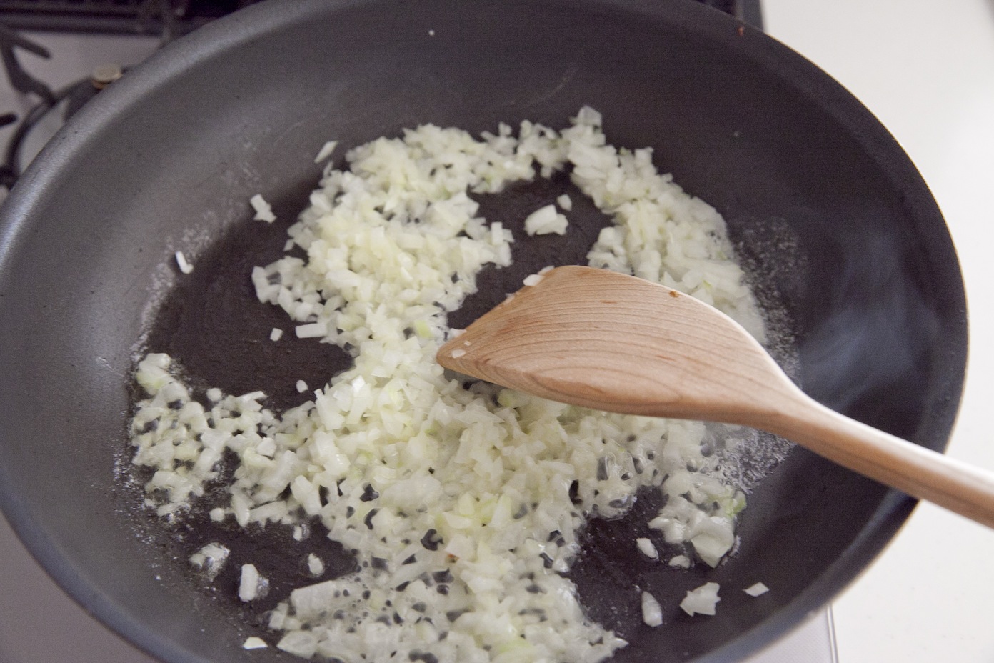 ③フライパンにバターを溶かし、玉ねぎを炒める。