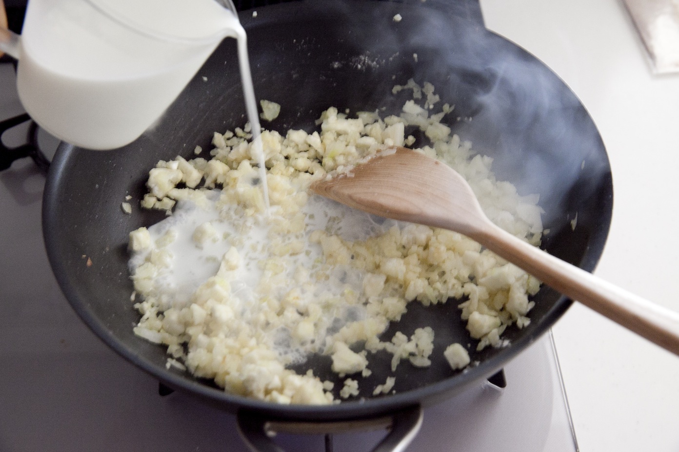 牛乳を少しずつ加える。