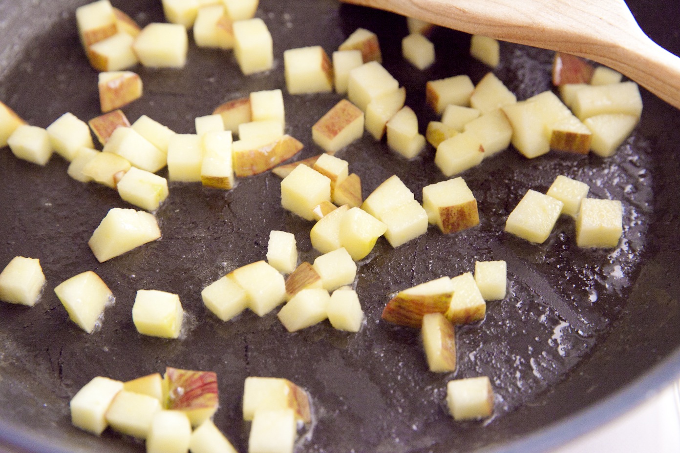 ②フライパンにバターを熱し、りんご炒める。