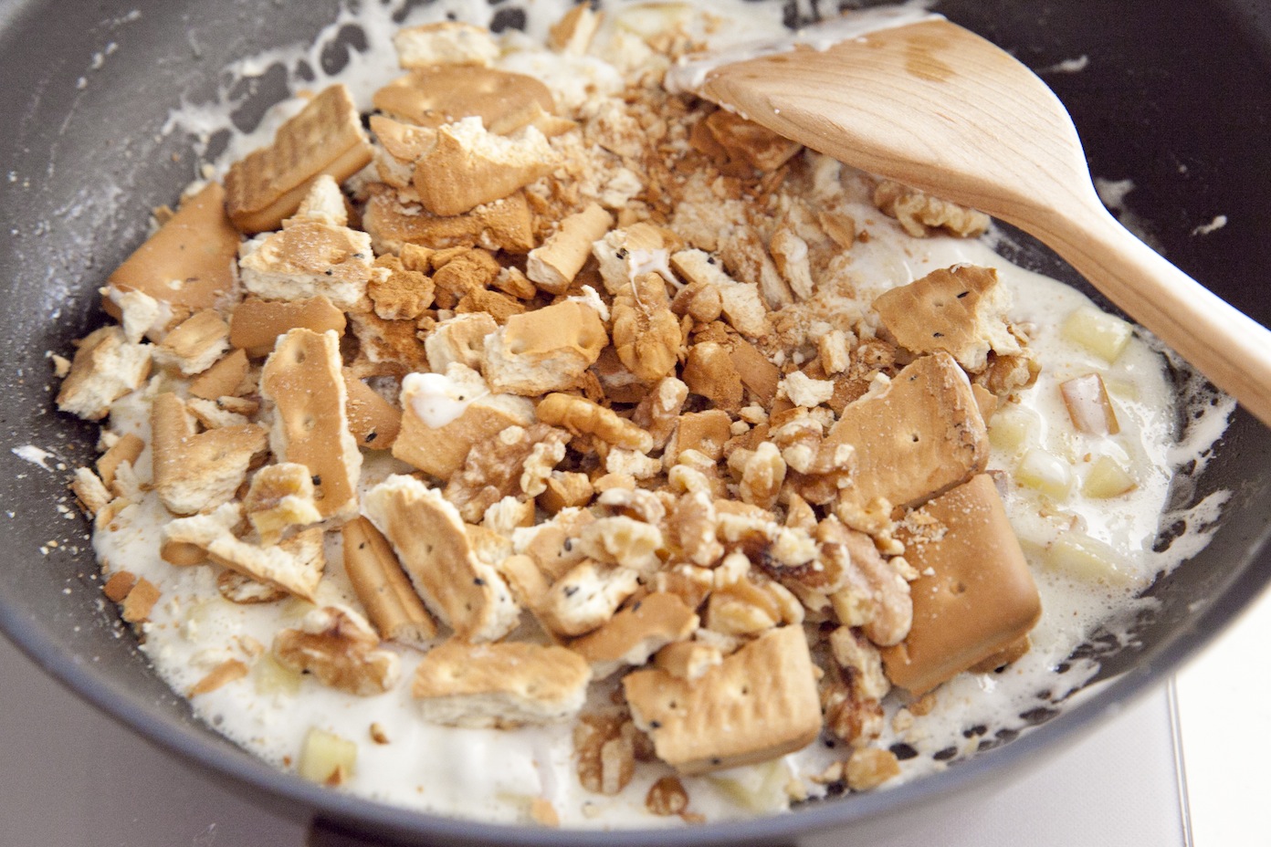 ③マシュマロが溶けたら乾パン、くるみ、シナモンを