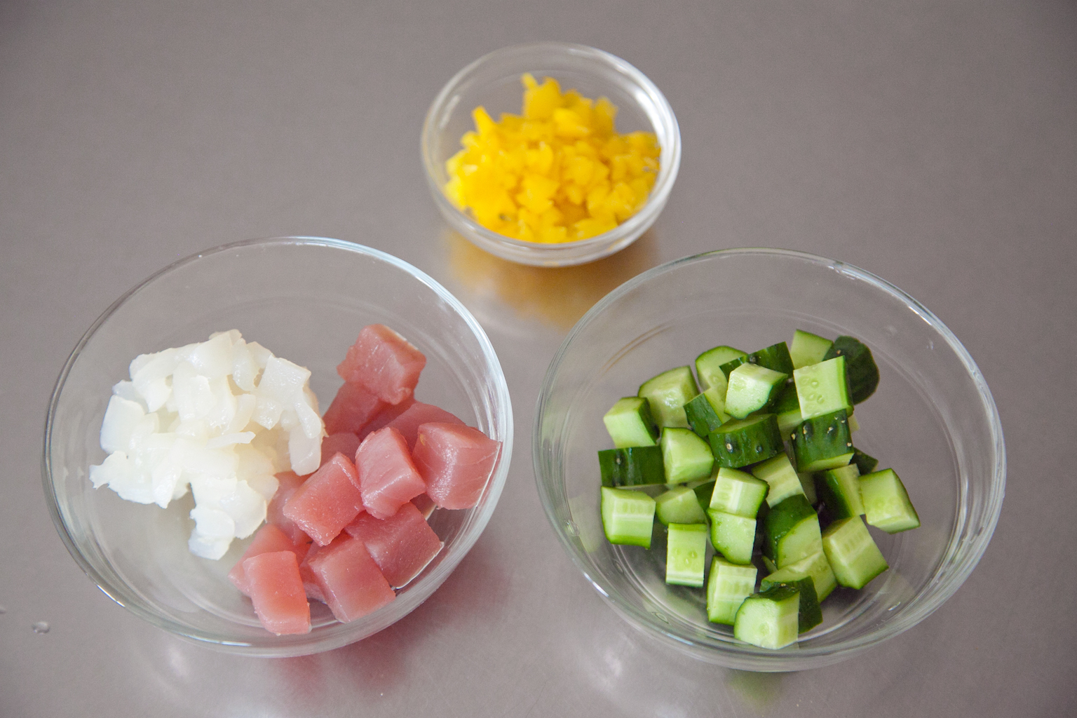 お刺身、野菜、漬物は自由にアレンジしてOK。