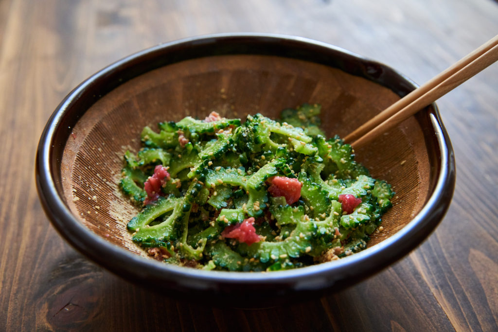 ゴーヤの苦味を楽しむため、茹でずに生でいただく「ゴーヤと梅のサラダ」の作り方です。