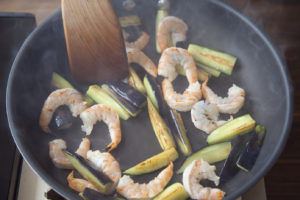 同じフライパンに残りのココナッツオイルを熱し、
