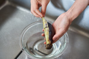 ・なすの皮をむくときはやけどに気をつけ、なるべく水にさらさない方が、