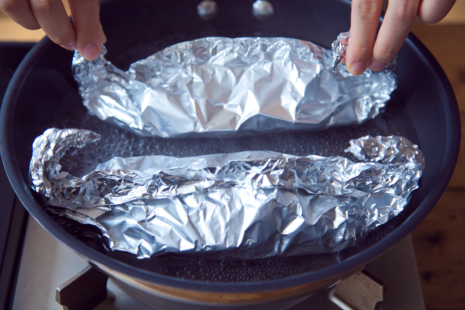 フライパンに水を1cmほど注いで、沸いたら3を入れ、