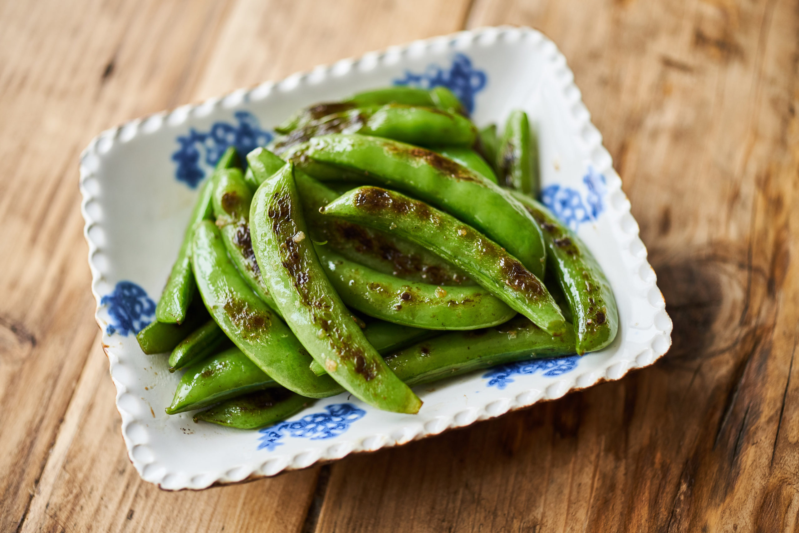 シンプルに美味しく仕上がる、焼きスナップエンドウです。