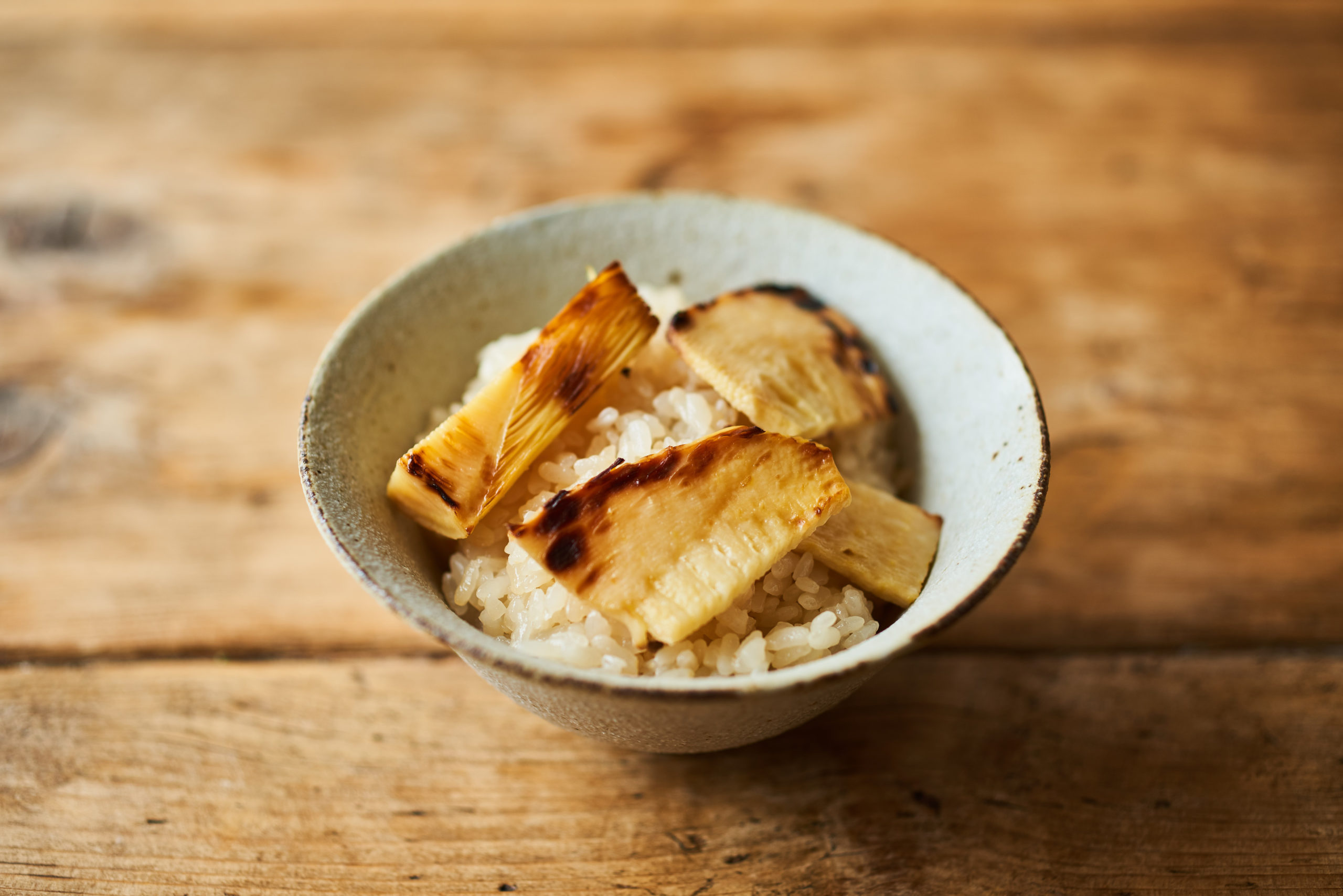 ・たけのこは焼いてから炊き込むことで、味が凝縮し、香ばしさも出ます。