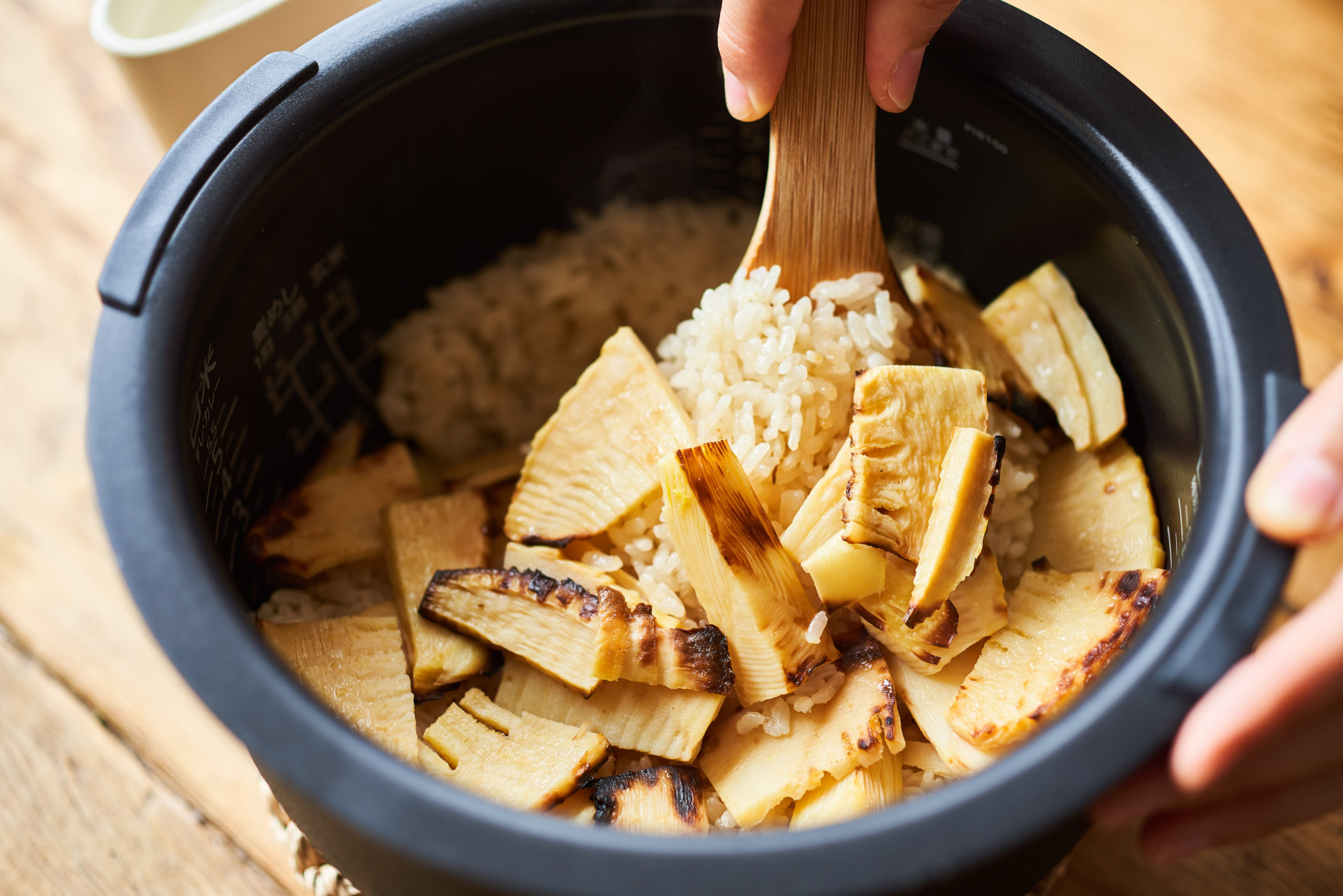 ・たけのこは焼いてから炊き込むことで、味が凝縮し、香ばしさも出ます。