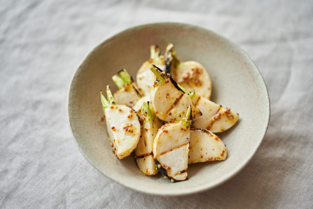 秋のかぶは甘みがあるので、じっくり焼きで甘さを引き出して。