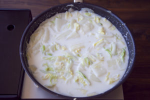 白菜がしんなりしてカサが減ってきたらバター、 薄力粉を加えて炒める。