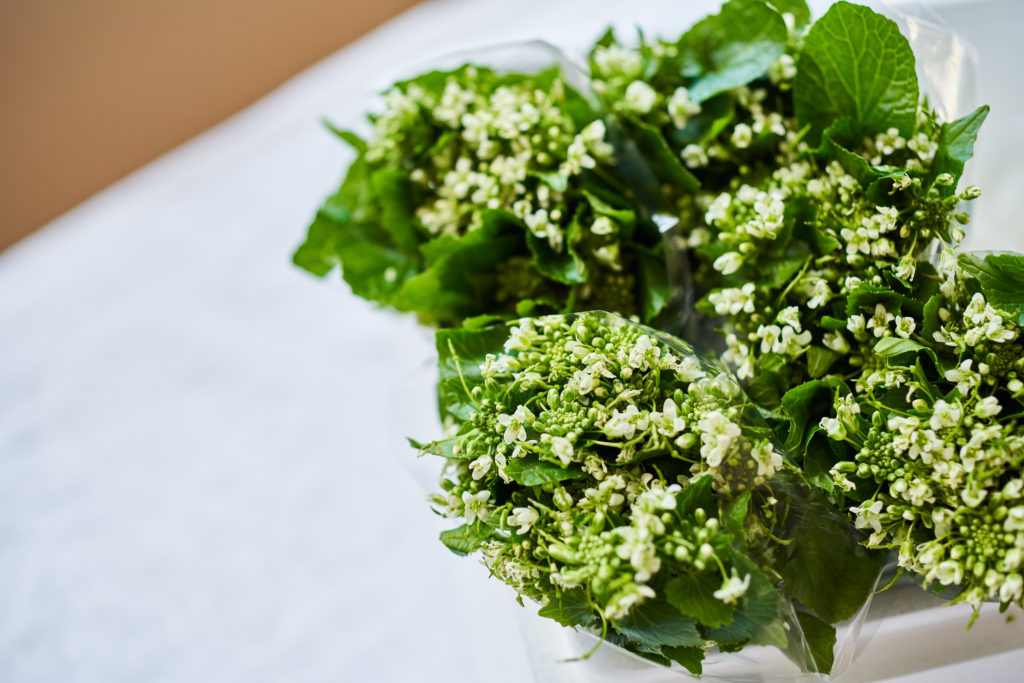 花わさびは、熱湯ではなく80度程度の湯を使ってさっと茹でること、