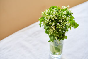 白くて小さな花たちがかわいくて、いつも花わさびの時期には調理の時間まで飾っておくのが習慣です。