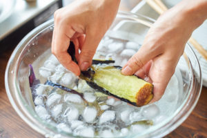 ・なすは丸ごと揚げることで、なすのうまみを逃さず仕上げます。
