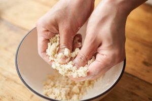 太白ごま油を加えて手ですり潰すようにして全体が均一にポロポロとするまでまぜる。