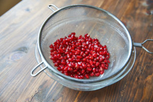 ざくろは、でっぱりを切り落とし、切り込みを入れて