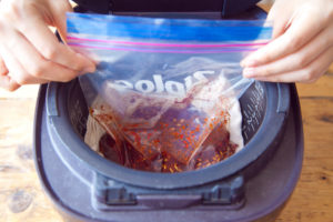 耐熱のジッパー付き保存袋に全ての材料をいれてなじませる。