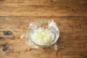 玉ねぎはみじん切りにして耐熱皿に入れ、